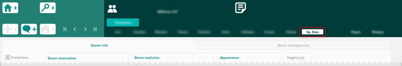The "Donor info" tab is accessible for everyone working with donated tissue, while the "Donor management" tab is only displayed for users, who are allowed to access the donor´s identity or to do administration for donor records.